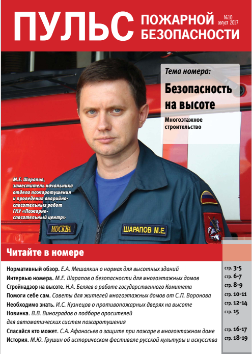 Уважаемые читатели! Представляем Вашему вниманию десятый выпуск журнала «Пульс пожарной безопасности», приуроченный к Дню строителя, посвященный безопасности в многоэтажных строениях и средствам пожаротушения.