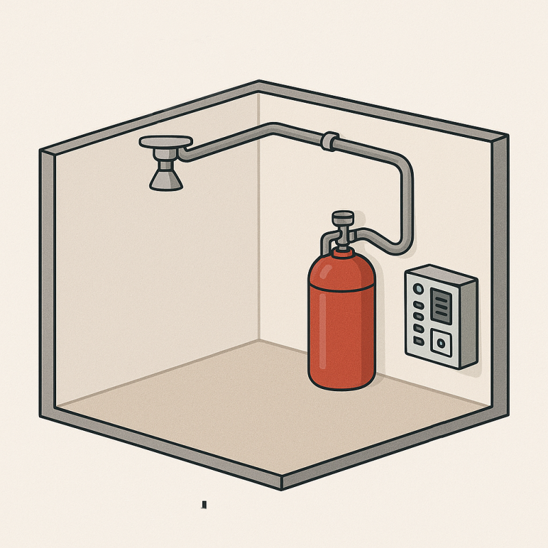 - Помещения с электронным оборудованием, которое может выйти из строя при попадании порошка (например, серверные).