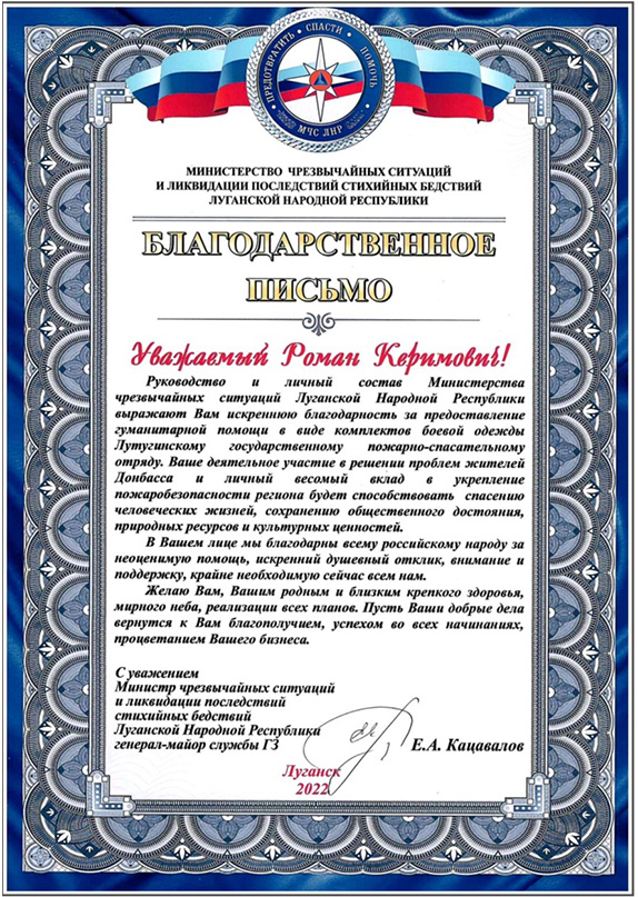 Мы закупили и передали в дар 15 полных комплектов боевой одежды пожарных в Лутугинский ГПСО, а наши друзья и давние партнёры из международной общественной организации бывших военнослужащих «Марс-Меркурий» помогли доставить груз в Луганскую Народную Республику.