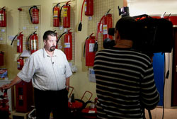 На минувшей неделе съемочная группа утренней программы «Настроение» посетила торгово-выставочный зал «Магазин 01» в Сокольниках. Как всегда, первыми в объектив видеооператора попали огнетушители. Но уже после предварительной беседы с руководителем учебного центра, который напомнил, что пожарная безопасность – это не просто огнетушитель, а комплекс мер, свое место в передаче заняли и квартирный пожарный кран, и извещатели, а также различные средства спасения.