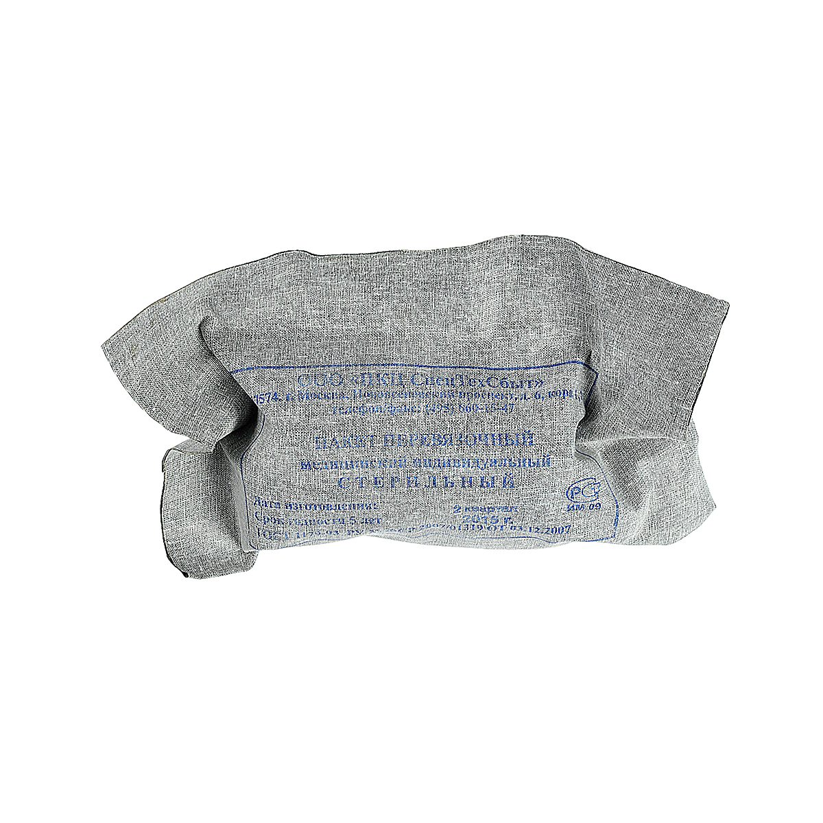 Является стерильным перевязочным средством и служит для наложения первичных повязок на раны. Состоит из бинта (10х15), двух компрессов подушечек, одна из которых пришита к бинту, и герметичной прорезиненной оболочки.