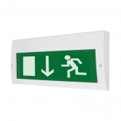 Аккумуляторный аварийный светодиодный светильник указатель М-220-РИП "Человек влево стрелка вниз в дверь" (Е10). Работает в постоянном режиме от напряжения 220В. Обеспечивает подсветку в течение 7 часов в случае отключения электроэнергии.