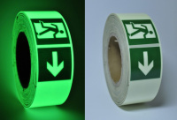 Фотолюминесцентная лента с линейной разметкой с печатью знака Е02-01 Направляющая стрелка Е01-01 выход здесь левост.0,05х1м