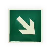 Самоклеящаяся наклейка E02-02 "Направляющая стрелка под углом 45" используется только вместе с другими эвакуационными знаками для указания направления движения (используется совместно с другими знаками пожарной безопасности).