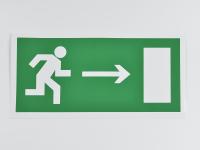 Самоклеящаяся наклейка E03 "Направление к выходу направо" используется на стенах помещений для указания направления движения к эвакуационному выходу (используется совместно с другими знаками пожарной безопасности).