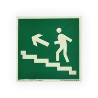 Самоклеящаяся наклейка E16 "Направление к выходу по лестнице вверх (налево)" используется на лестничных площадках и стенах, прилегающих к лестничному маршу (используется совместно с другими знаками пожарной безопасности). Для обеспечения самостоятельного выхода людей из опасных зон в случае возникновения аварий, пожаров и других ЧС.