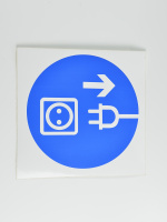 Самоклеящаяся наклейка M13 "Отключить штепсельную вилку" используется на рабочих местах и оборудовании, где требуется отключение от электросети при наладке или остановке электрооборудования и в других случаях. (используется совместно с другими знаками пожарной безопасности).