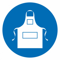 Самоклеящаяся наклейка M17 "Работать в защитном фартуке". Используется на рабочих местах, где при проведении работ необходимо надевать защитный фартук (используется совместно с другими знаками пожарной безопасности).