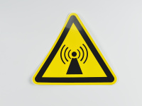 Самоклеящаяся наклейка W12 "Внимание. Электромагнитное поле" используется на дверях помещений, оборудовании, приборах и в других местах, где действуют электромагнитные поля (используется совместно с другими знаками пожарной безопасности).