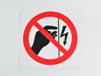 Самоклеящаяся наклейка P09 "Запрещается прикасаться. Под напряжением" используется на поверхности корпусов, щитов и т.п., где есть возможность поражения электрическим током (используется совместно с другими знаками пожарной безопасности).