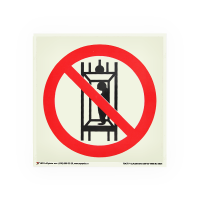 Самоклеящаяся наклейка P13 "Запрещается транспортировка пассажиров" используется на дверях грузовых лифтов и других подъемных механизмов (используется совместно с другими знаками пожарной безопасности).