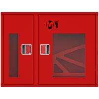 Шкаф комплектуется поворотной корзиной (рукавной кассетой) для одного напорного рукава диаметром от 50 до 66 мм. Снабжен дверцами со смотровым окном с почтовыми замками и карманами для хранения ключей. Окрашен прочным полимерным покрытием красного цвета. Толщина металла 0,6мм.
