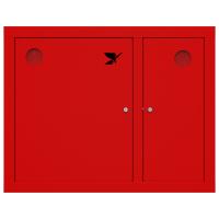 Шкаф комплектуется поворотной корзиной (рукавной кассетой) для одного напорного рукава диаметром от 50 до 66 мм. Снабжен дверцами закрытого типа без смотрового окна с почтовыми замками и карманами для хранения ключей. Окрашен прочным полимерным покрытием красного цвета.