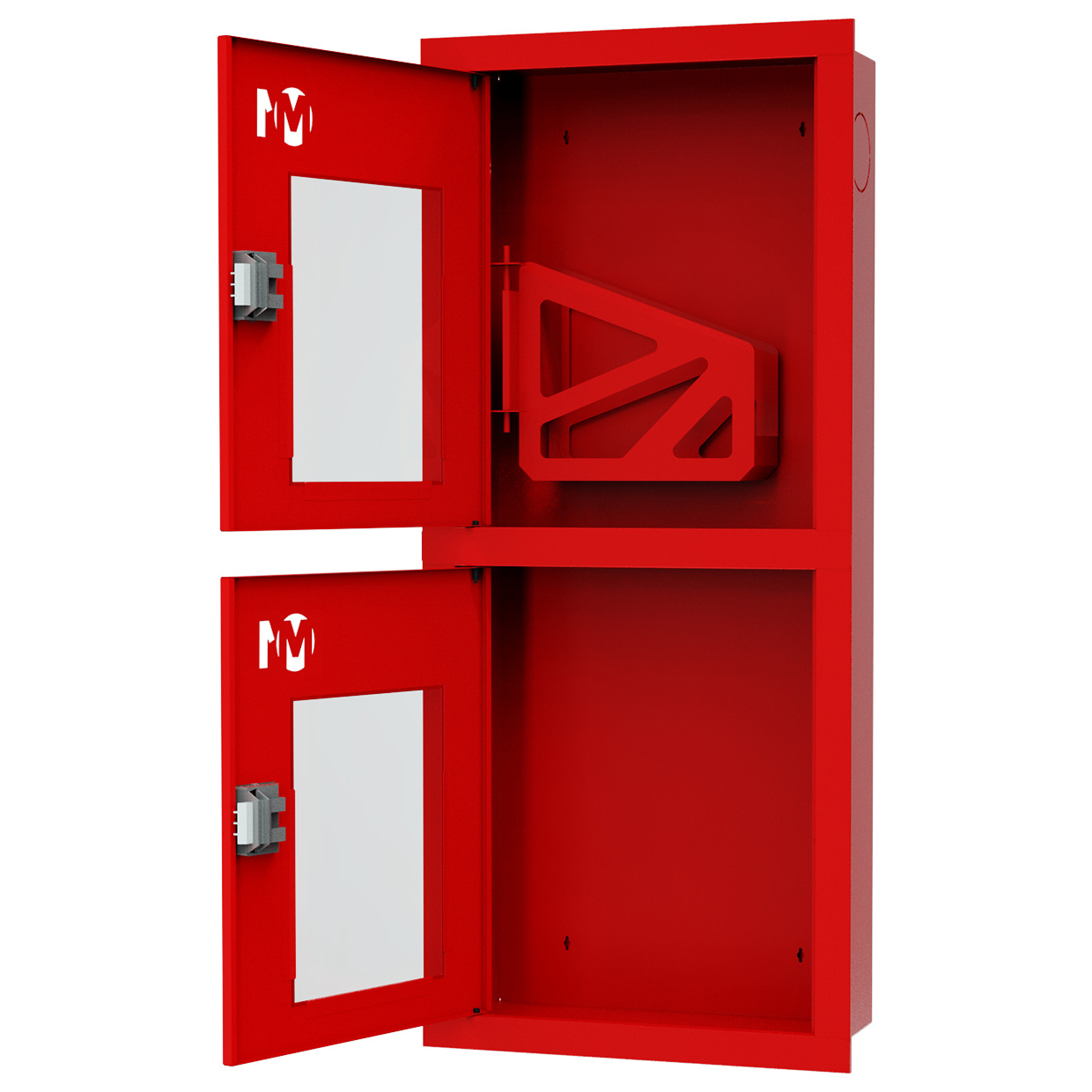 Шкаф пожарный ШП-К-О-003 "Т" ВОК М01 с евроручками (встраиваемый, открытый, красный) для одного рукава крана противопожарного водопровода и двух огнетушителей.