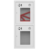 Секции шкафа имеют равные размеры и расположены друг над другом. Верхний отдел комплектуется поворотной корзиной (рукавной кассетой) для одного напорного рукава диаметром от 50 до 66 мм. Нижнее отделение предназначено для хранения двух огнетушителей.