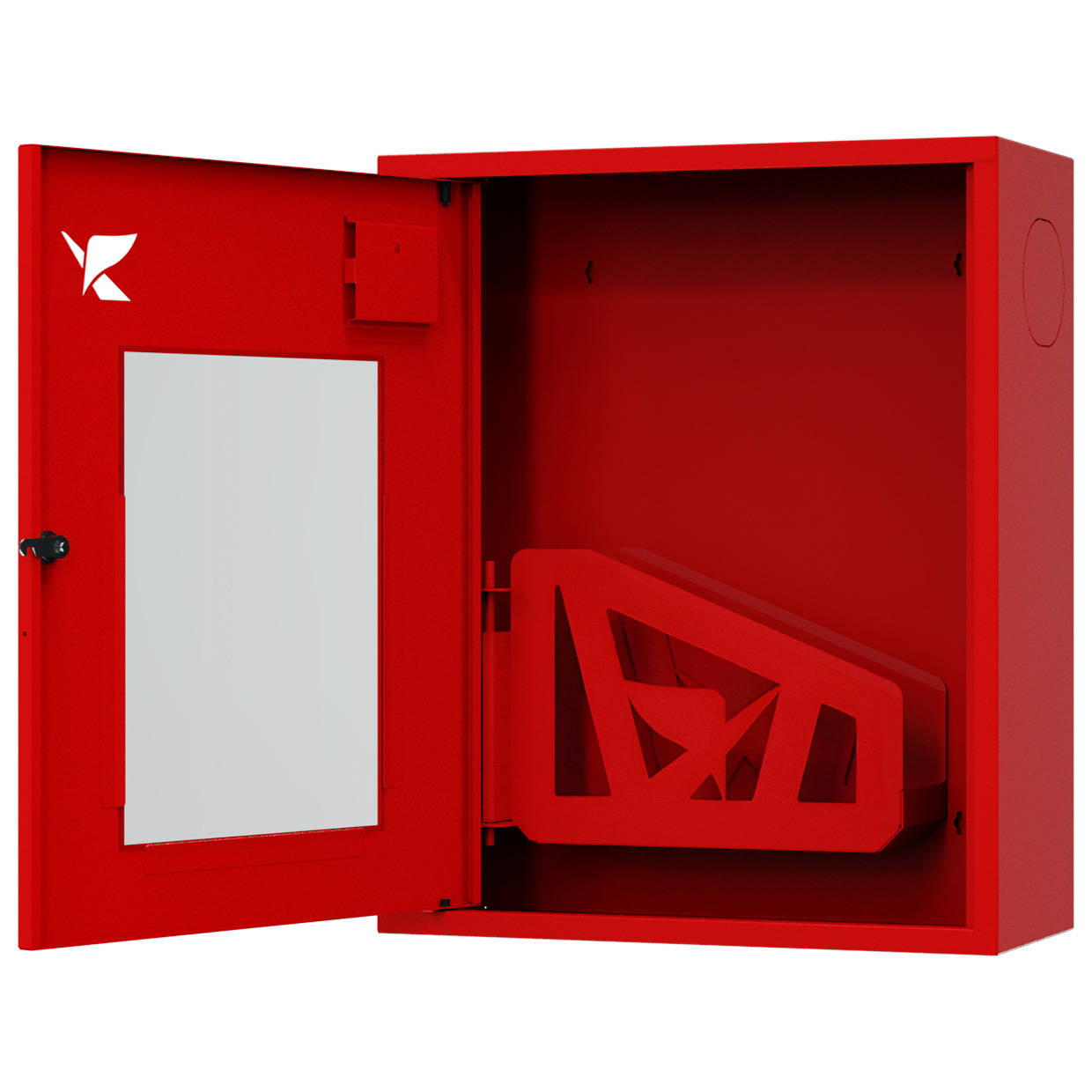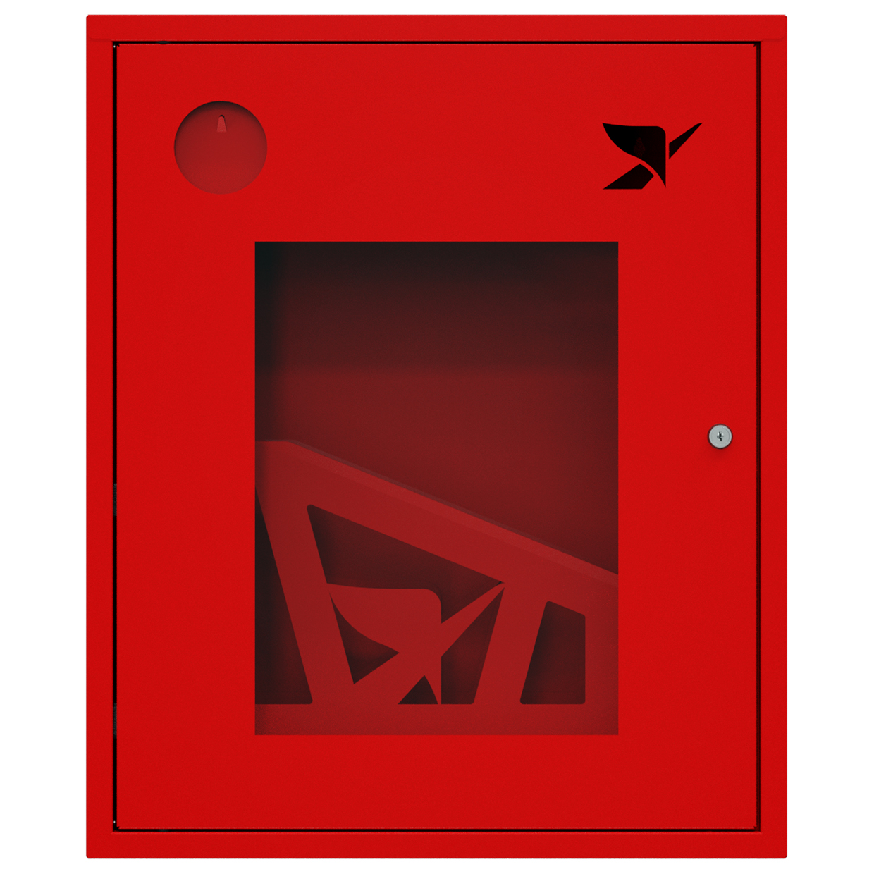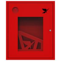 Шкаф комплектуется поворотной корзиной (рукавной кассетой) для одного напорного рукава диаметром от 50 до 66 мм. Снабжен дверцей со смотровым окном с почтовым замком и карманом для хранения ключей. Окрашен прочным полимерным покрытием красного цвета.