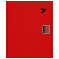 Шкаф комплектуется поворотной корзиной (рукавной кассетой) для одного напорного рукава диаметром от 50 до 66 мм. Снабжен дверцей закрытого типа без смотрового окна с удобной евроручкой. Окрашен прочным полимерным покрытием красного цвета.