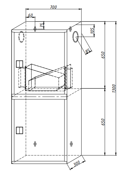 - Легкий комфортный монтаж, благодаря удачно расположенным технологическим отверстиям для крепления шкафа и вывода труб противопожарного водопровода.