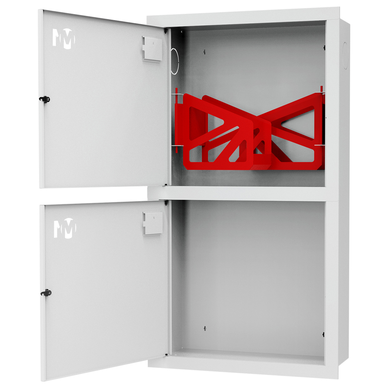 Шкаф пожарный ШП-К-О-003-12 "Т" ВЗБ М01 с почтовыми замками (встраиваемый, закрытый, белый) для двух рукавов крана противопожарного водопровода и двух огнетушителей.