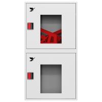 Секции шкафа имеют равные размеры и расположены друг над другом. Верхний отдел комплектуется двумя поворотными корзинами (рукавными кассетами) для двух напорных рукавов диаметром от 50 до 66 мм. Нижнее отделение предназначено для хранения двух огнетушителей.