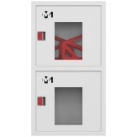 Секции шкафа имеют равные размеры и расположены друг над другом. Верхний отдел комплектуется двумя поворотными корзинами (рукавными кассетами) для двух напорных рукавов диаметром от 50 до 66 мм. Нижнее отделение предназначено для хранения двух огнетушителей.