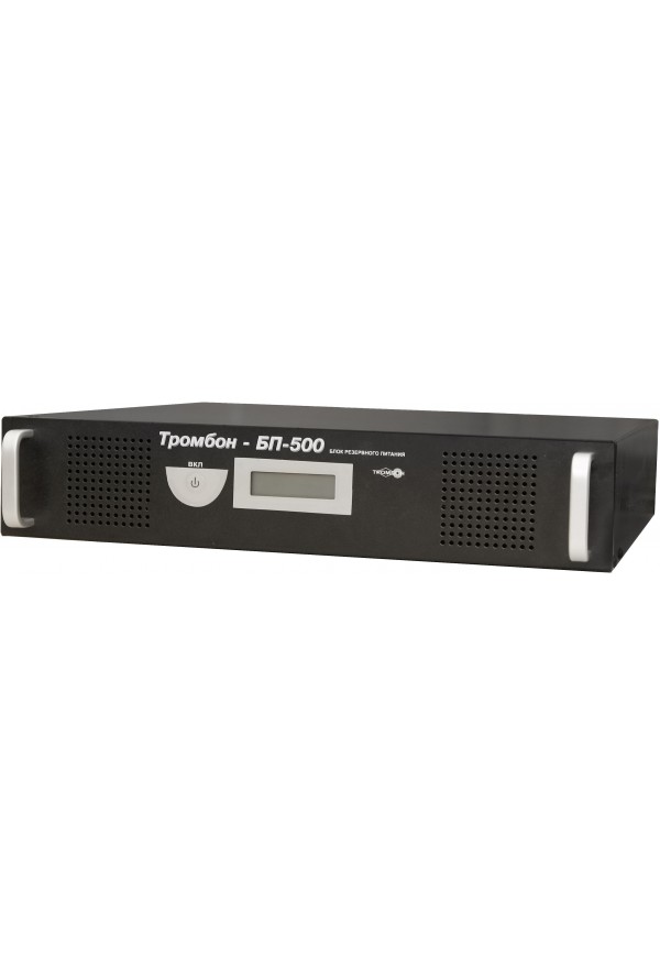 ТРОМБОН-БП-500 (мод.14) - блок резервного питания 220В 50Гц; мощность 500Вт; напряжение питания 220В 50Гц; некоммутируемый выход 220В 50Гц - 2; габариты 483х430х89 мм (2U); 21кг. Аккумуляторы (4шт) в комплекте.