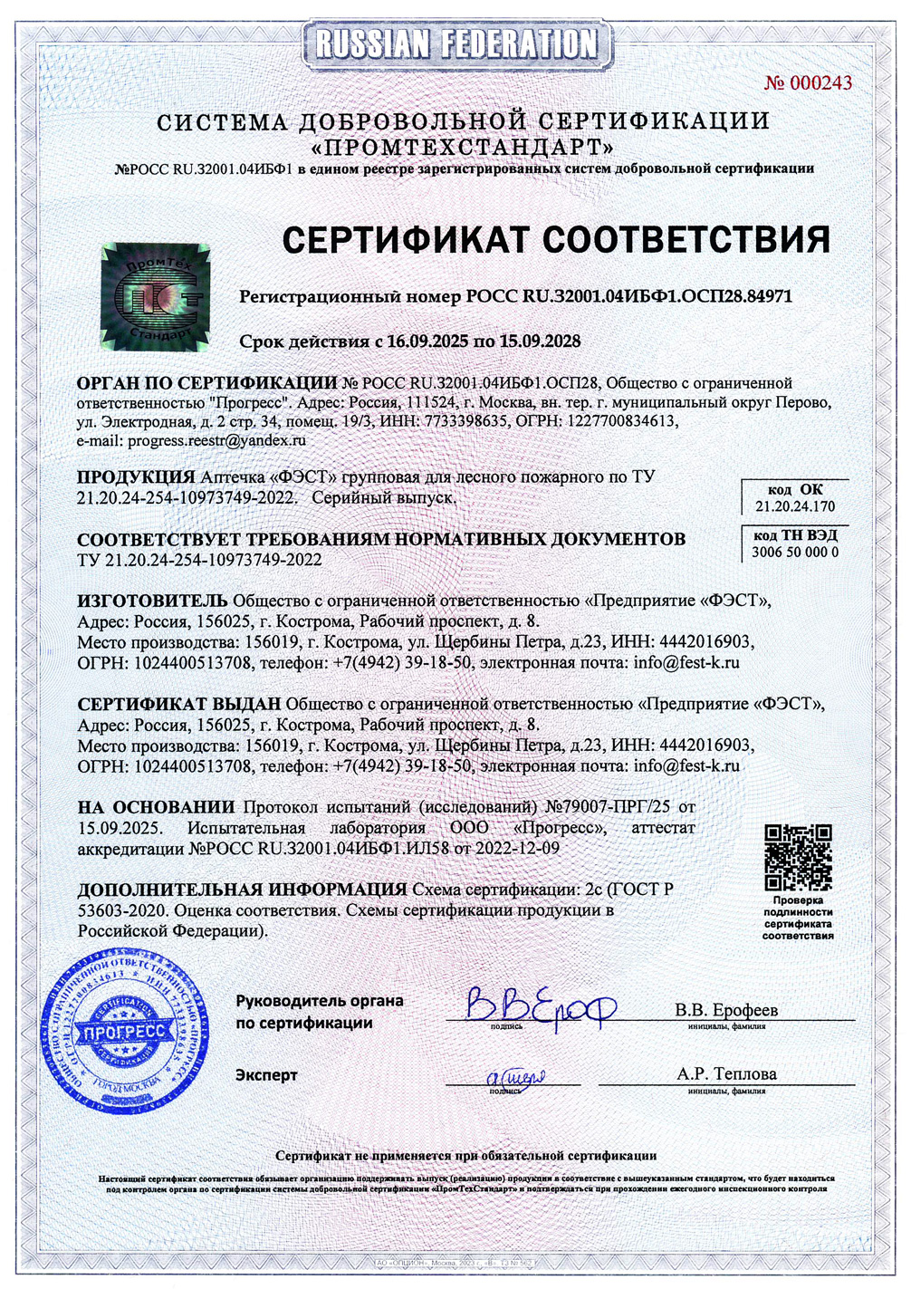 | 2.2 | Инструкция по оказанию первой помощи с применением аптечки «ФЭСТ» групповой для лесного пожарного | 1 шт. |