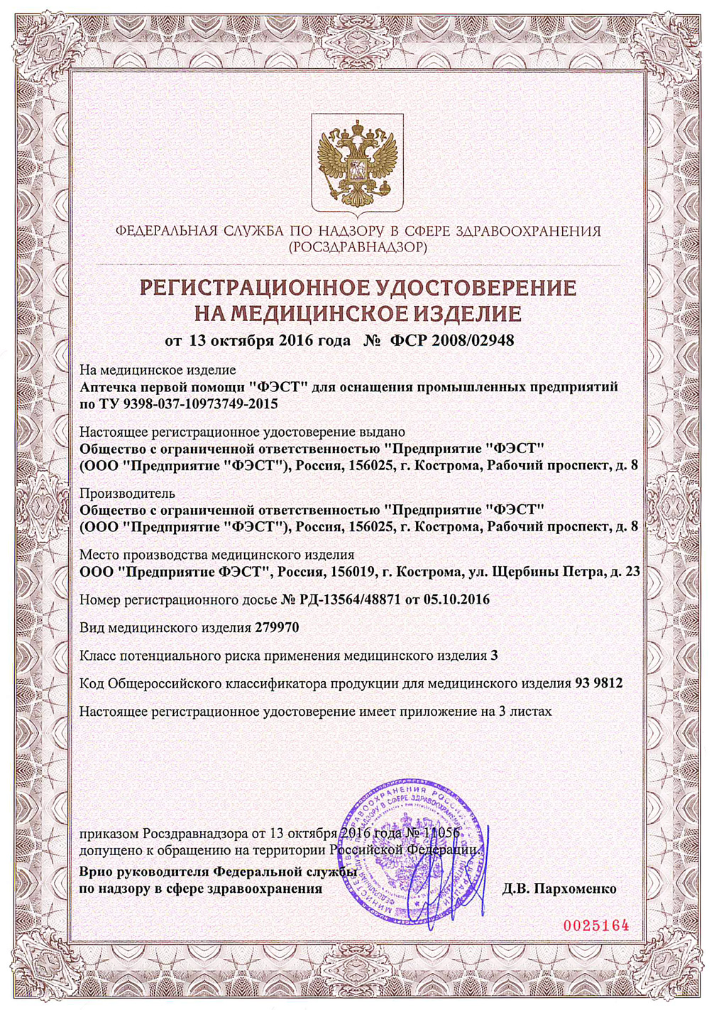 | 13 | Лейкопластырь 1 × 250 см | 1 уп. |