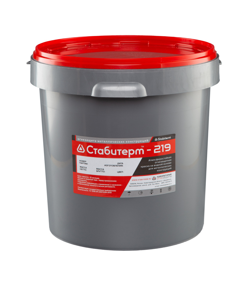 Атмосферостойкая огнезащитная краска на водной основе для металлических конструкций Стабитерм-219 представляет собой суспензию интумесцентных наполнителей, различных функциональных добавок и пигментов в водно-дисперсном пленкообразующем.