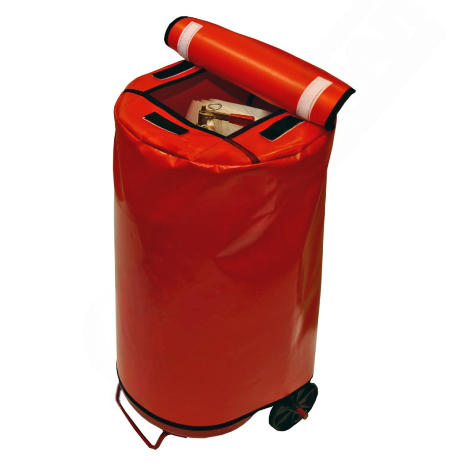 Для защиты огнетушителей от воздействия неблагоприятных факторов используются чехлы для огнетушителей. Чехлы для огнетушителей переносного типа сверху имеют ручку, для легкого снятия. Чехлы же для передвижных огнетушителей оборудованы отстегивающейся крышкой, закрепляющейся липучками.