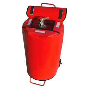 Для защиты огнетушителей от воздействия неблагоприятных факторов используются чехлы для огнетушителей. Чехлы для огнетушителей переносного типа сверху имеют ручку, для легкого снятия. Чехлы же для передвижных огнетушителей оборудованы отстегивающейся крышкой, закрепляющейся липучками.