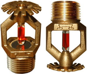 Оросители состоят из корпуса (штуцер и две дужки как единое целое), розетки и втулки, вмонтированной в верхнюю часть корпуса (в бобышку). Конструкция спринклерного оросителя включает в себя еще и запорное устройство с разрывным термочувствительным элементом – стеклянной колбой диаметром 5 мм. Оросители спроектированы таким образом, что огнетушащее вещество (вода или вода со смачивателем), проходя через спрофилированное отверстие оросителя, подается на розетку, которая формирует однородный поток капель.