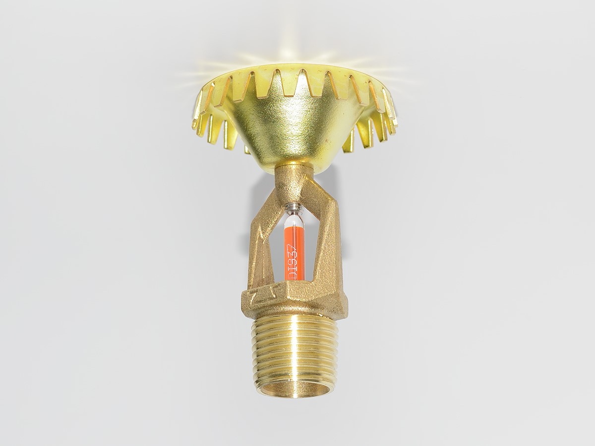 При температуре окружающей среды выше номинальной температуры срабатывания, капсула разрушается и под давлением жидкости (раствора пенообразователя) крышка (клапан), тарельчатая пружина и разрушенная колба выбрасываются, а розетка распыляя раствор пенообразователя, образует пену кратности и распределяет ее по защищаемой площади.