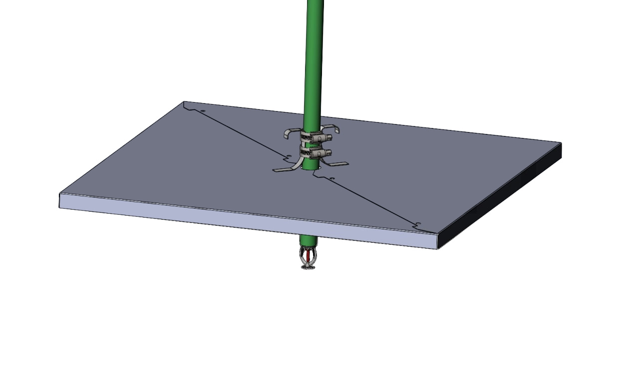 Пожарный экран для спринклерной системы совмещается с открытыми и подвесными решетчатыми потолками.