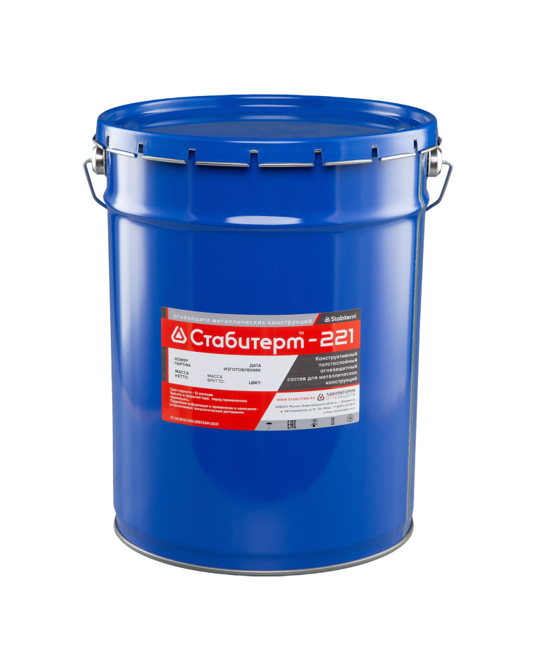 Конструктивный толстослойный огнезащитный состав для металлических конструкций Стабитерм-221 — это однокомпонентный состав, представляющий собой смесь огнезащитных компонентов, низкотеплопроводящих наполнителей и функциональных добавок в органо-дисперсном пленкообразующем.