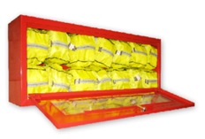 Металлический контейнер для хранения универсальных фильтрующих малогабаритных самоспасателей и специальной огнестойкой накидки «Шанс»:
