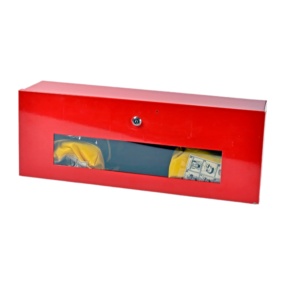 Металлический контейнер для хранения универсальных фильтрующих малогабаритных самоспасателей и специальной огнестойкой накидки «Шанс»: