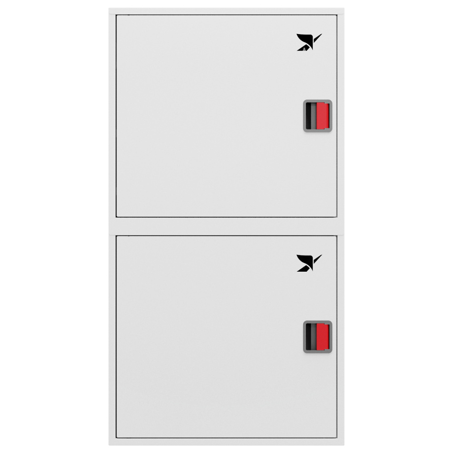 Шкаф пожарный ШПК-О-320-12 «Пульс» НЗБ с евроручками (навесной, закрытый, белый) для двух рукавов крана противопожарного водопровода и двух огнетушителей.