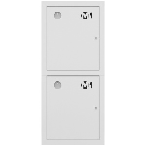 Шкаф пожарный ШП-К-003-21 ВЗБ М01 с почтовыми замками (встраиваемый, закрытый, белый) для двух рукавов крана противопожарного водопровода.