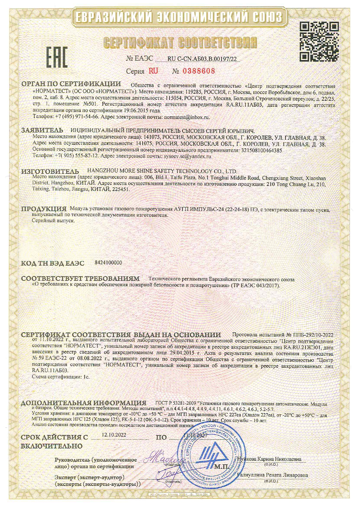 Модуль ИМПУЛЬС-24 предназначен для тушения пожаров класса А (горение твердых веществ), В (горение жидких веществ), С (горение газообразных веществ) по ГОСТ 27331-87 и электроустановок до 1000 В, находящихся под напряжением.