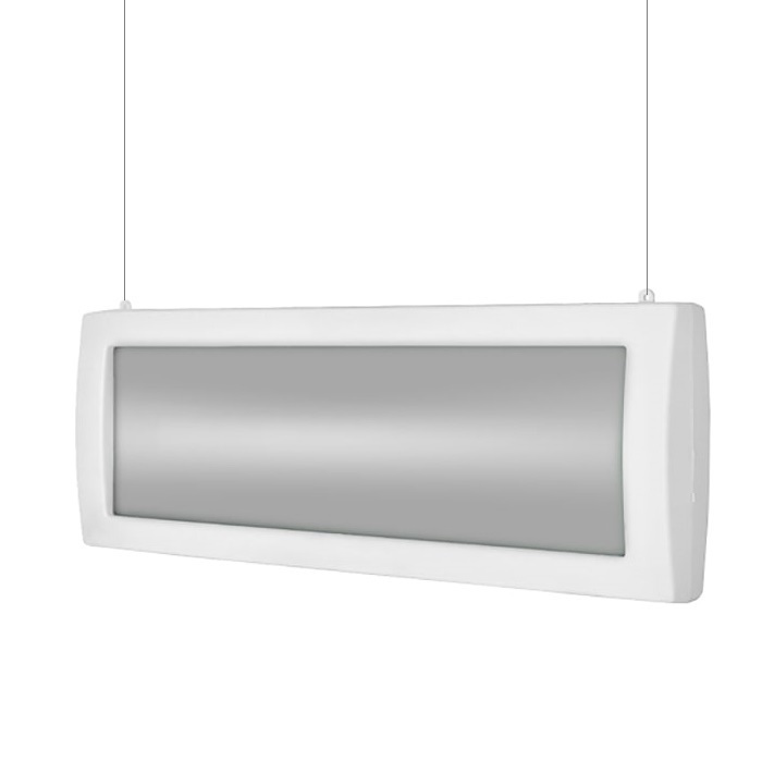 Двухстороннее плоское световое табло. Потолочное исполнение. Предусмотрена возможность торцевого крепления к стене дополнительным кронштейном.
