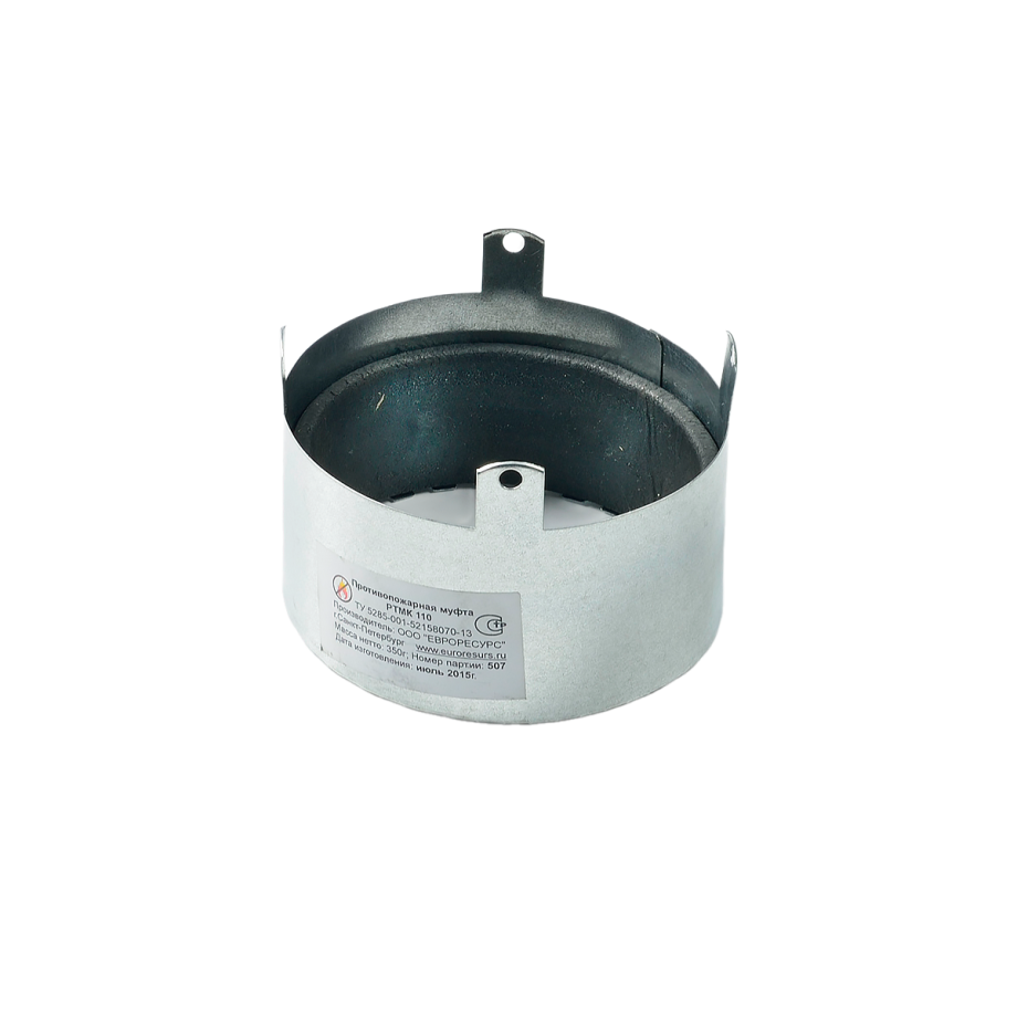 Противопожарная комбинированная муфта РТМК состоит из металлического корпуса и резиноподобного терморасширяющегося материала, используемого в качестве вкладыша, расположенного между внутренней поверхностью корпуса и наружным диаметром трубы.