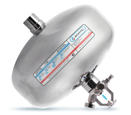 Принцип действия модульной установки пожаротушения Bontel основан на использовании энергии сжатого газа, для выброса огнетушащего состава на очаг пожара. При разрушении теплового замка, при достижении в зоне расположения модуля, пороговых значений температуры (температуру срабатывания можно выбрать: 57, 68, 79, 93, 141, 182 °С) или подаче внешнего управляющего электрического воздействия, огнетушащий состав под давлением, через спринклерный ороситель, мелкодисперсным облаком подается в зону очага пожара. В случае комплектации модуля контролем срабатывания, в систему управления автоматической установки пожаротушения или в диспетчерский пункт выдается сигнал о срабатывании.