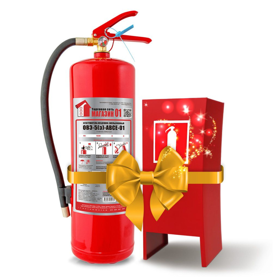 Набор включает в себя премиальный экологичный огнетушитель ОВЭ-5 и подставку П-15 под него .