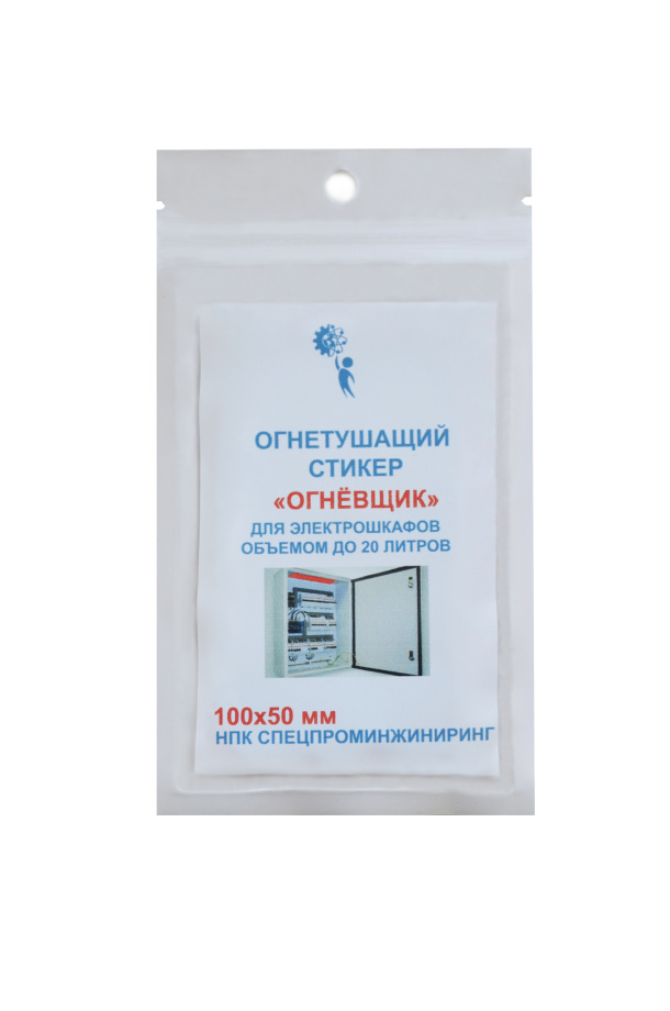 Огнетушащий стикер с микрокапсулами100x50 для розеток и электрошкафов объемом до 20 л