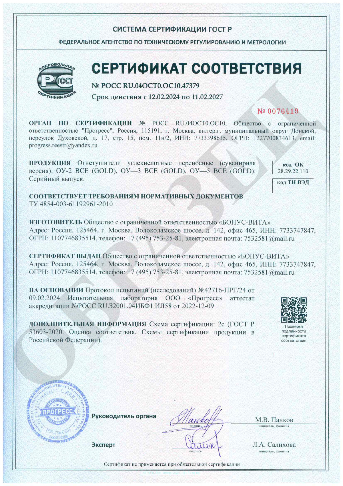 Огнетушитель углекислотный золотой ОУ-2 Бонус-Вита (г. Москва) - универсальный переносной огнетушитель.