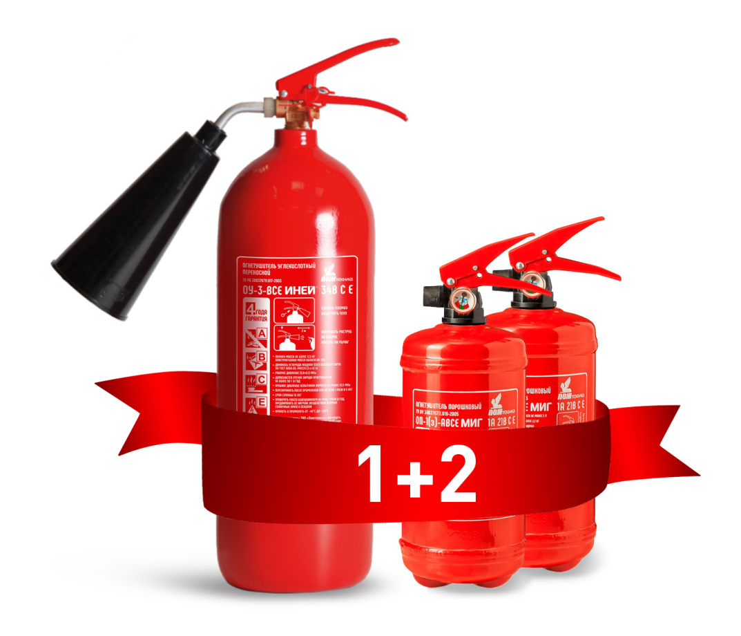 Акция 1+2: при покупке огнетушителя углекислотного ОУ-3 ИНЕЙ в подарок 2 огнетушителя порошковых ОП-1 МИГ!
