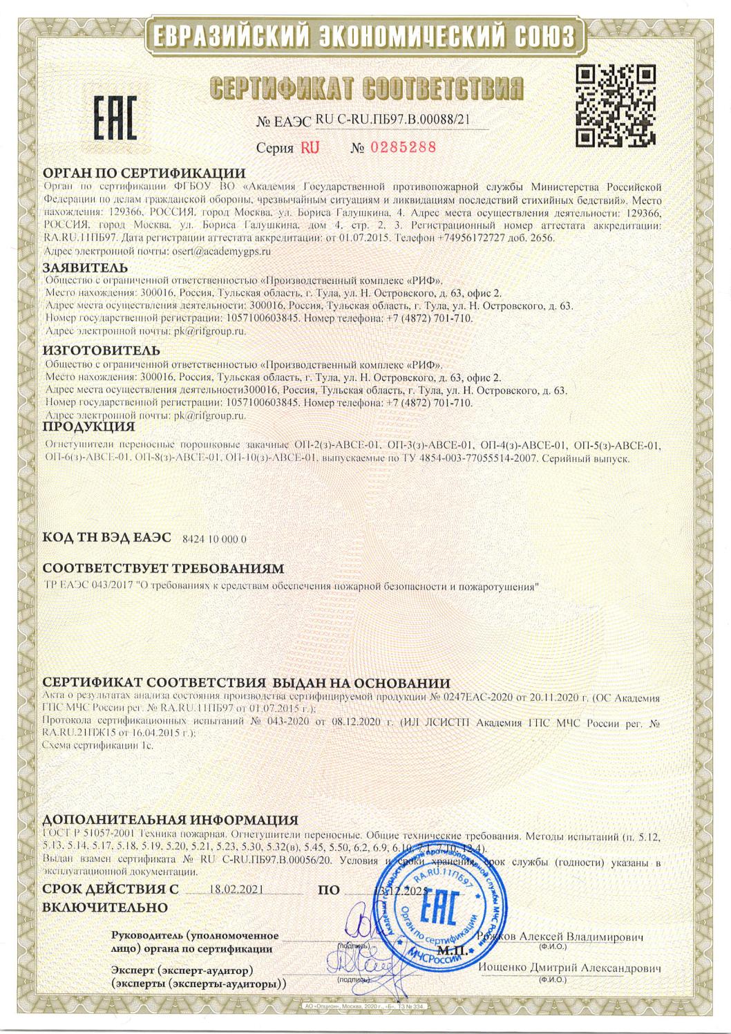 Огнетушитель порошковый ОП-3(з)-ABCE (1А, 34В, С, Е) РИФ
