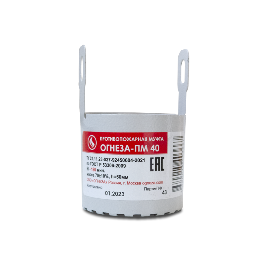 Муфта противопожарная «ОГНЕЗА-ПМ/40», цвет серый (ЕАС)