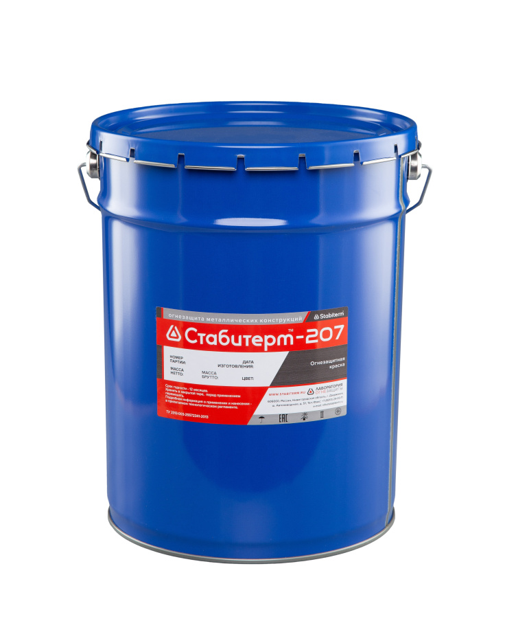 Огнезащитная краска Стабитерм-207 — это сложная многокомпонентная система, представляющая собой суспензию интумесцентных наполнителей, различных функциональных добавок и пигментов в органо-дисперсном пленкообразующем.